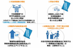 といった評価の中身については、賃上げ要件や加点項目を中心に明確な整理が行われています。